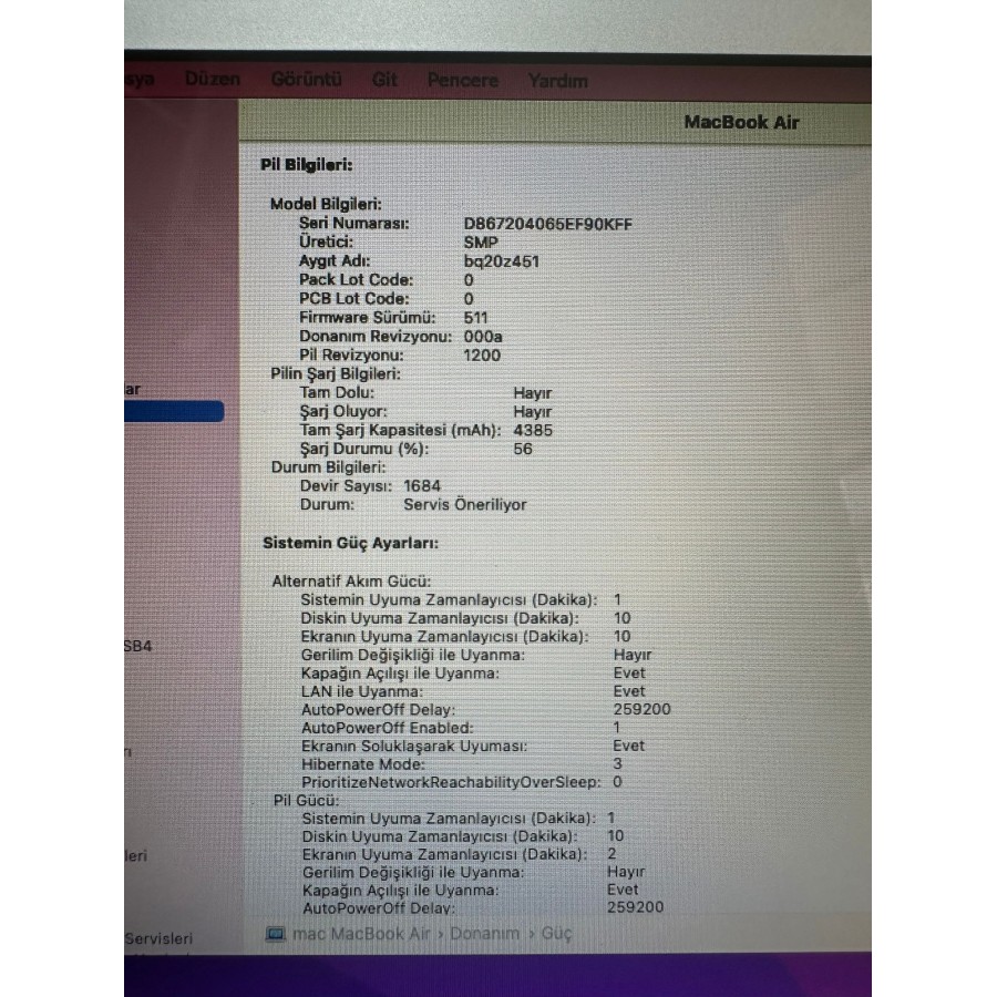 Apple Macbook Air 2017 İ5/8GB/128 4 Saat Pil A1466